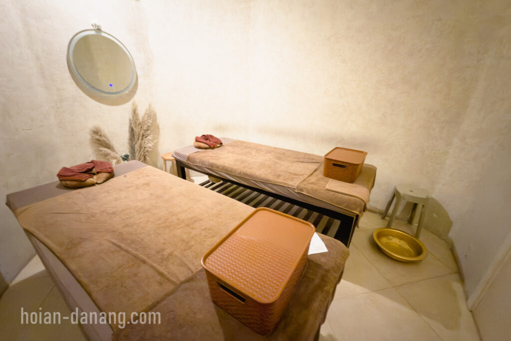 メニューには「バンブーマッサージ」や「アロママッサージ」などがあり、料金は60分 550,000〜700,000 VND(約3,440~4,380円)と、やや高級な価格帯。
