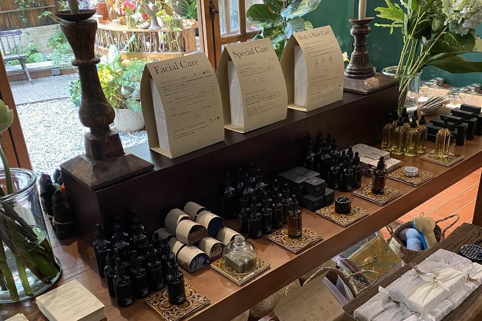 主な取り扱いは、タマヌオイル原液やセラム、熟成石鹸といったベーススキンケアを中心に、