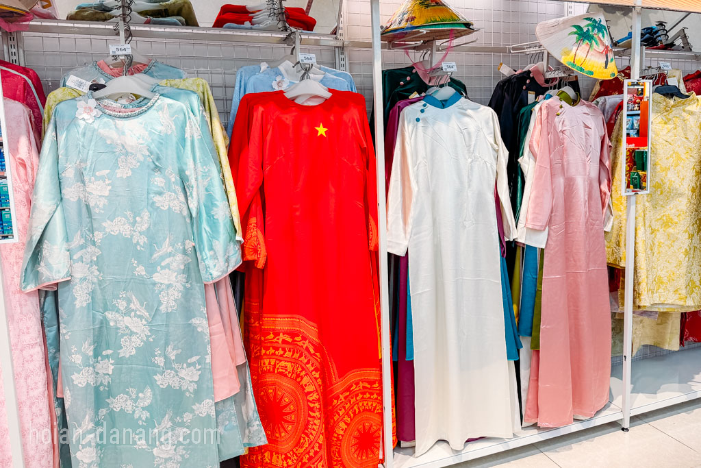 衣類コーナーにはアオザイの取り扱いもあり、お土産にも使えるアイテムが一通り揃う構成です。