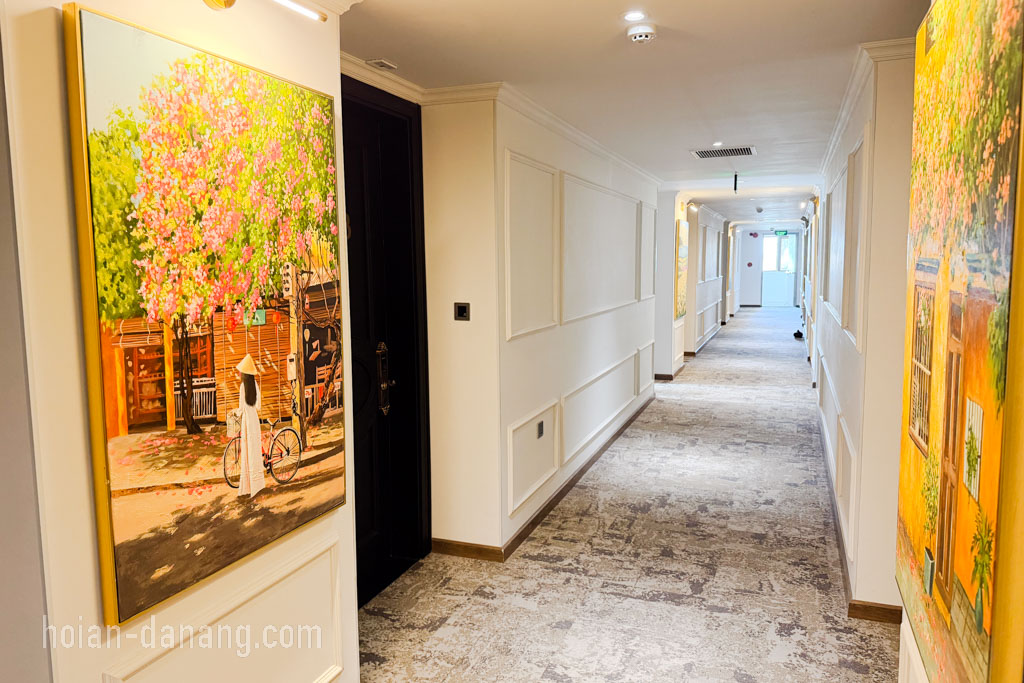 ホイアンの絵画が飾られた明るい廊下を抜け、部屋のドアを開けた瞬間、思わず「かわいい」と声が出ました。