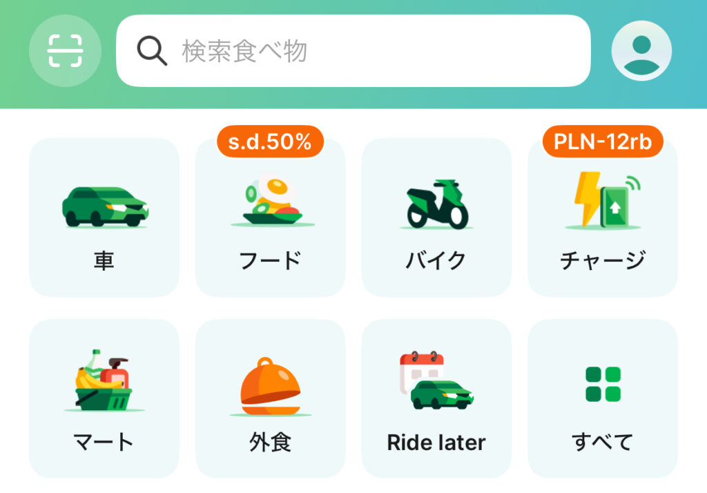 日本でいう Uber(ウーバー) のような配車サービスがメインですが、タクシー代わりの車だけでなく、バイクタクシーやフードデリバリーなど、生活に必要な移動・配達サービスをまとめて利用できるのが特徴です。