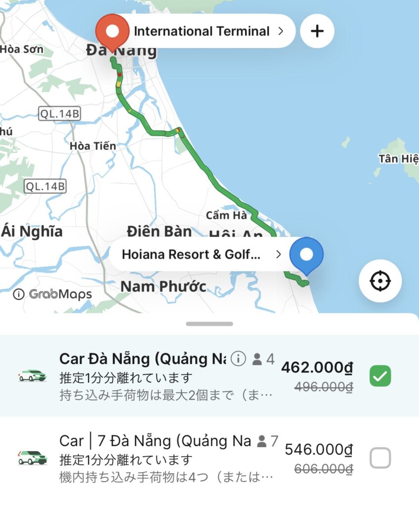 Grabの料金目安(ダナン〜ホイアン)
