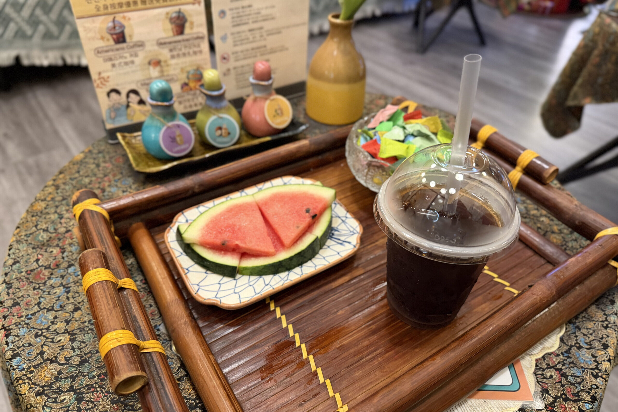 施術後はロビーへ戻り、事前に選んだドリンクとフルーツをいただきながらクールダウン。