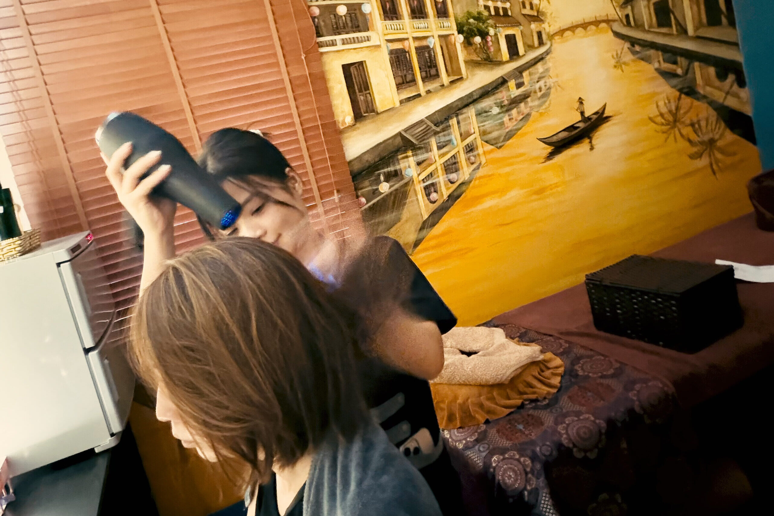 施術後は、そのまま個室内で髪を丁寧にドライしてもらえます。