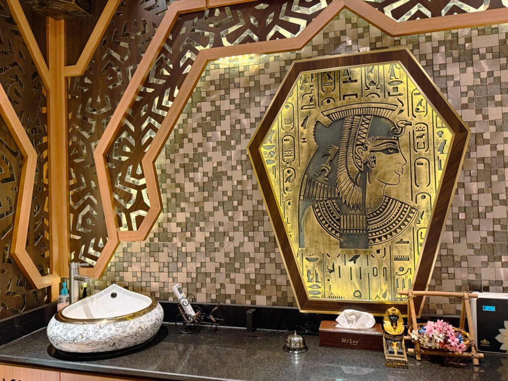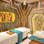 扉を抜けると、クレオパトラになったかのような気分で施術を受けられる黄金の施術室が現れます。