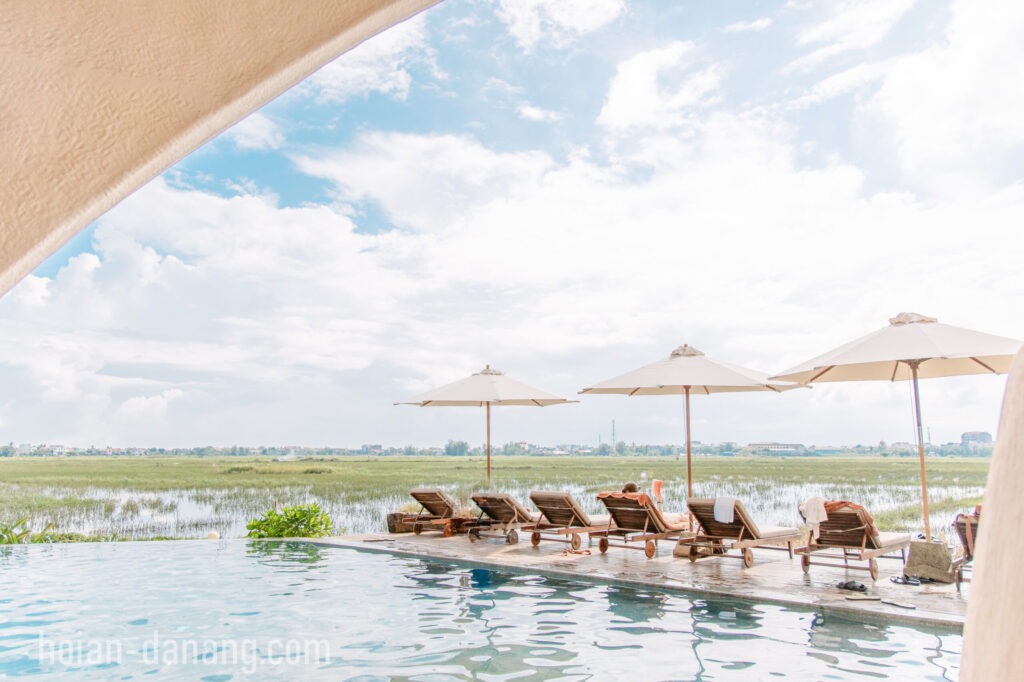 11月のホイアンは真夏ほどの暑さではありませんが、田園風景を楽しもうと多くの宿泊客が利用していました。
